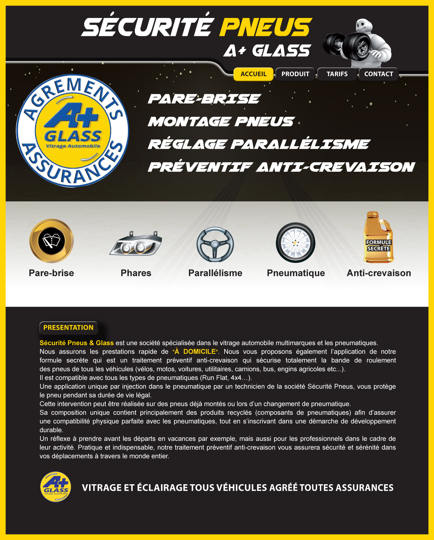 SECURITE PNEUS & GLASS est situe a saint nazaire en Loire atlantique (44), et propose un gel preventif anti crevaison Vente pneux, montage pneus a domicile saint nazaire en Loire Atlantique, réparation automobile, centre auto a saint nazaire, specialiste pneu © Olivier Guillouzouic Graphiste Guerande - 02 40 70 45 08 - www.oggraphic.fr |